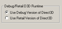 Beim Installieren des SDK müssen die Debug-LIB-Dateien mit installiert werden, so dass man später in der Systemsteuerung von DirectX zwischen der Retail- und der Debug-LIB-Version umschalten kann. Die Retailversion wird zum abschließenden Compilieren des Projektes aktiviert, weil sie etwas schneller und kleiner ist. Auch wen zur Entwicklungszeit der Performanceunterschied zur Debugversion interessiert, kann hier immer mal hin und her schalten.